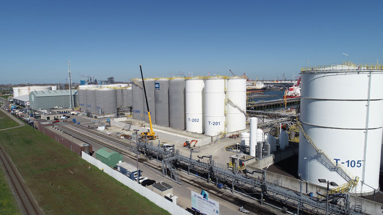 The construction of these six tanks forms part of a considerable investment in ML Tank Terminal tank storage. The capacity was doubled to 490,000 m3 in 2017. The delivery of these six tanks increases the total storage capacity to 510,000 m3. As well as the partnership with SJR Tank Construction, civil engineering works were also contracted to De Vries en Verburg Bouw and are already in full flow. ML Tank Terminal is one of the most modern and certified tank terminals in the world and is the first terminal in the Netherlands to hold the ISO 28001 certificate.